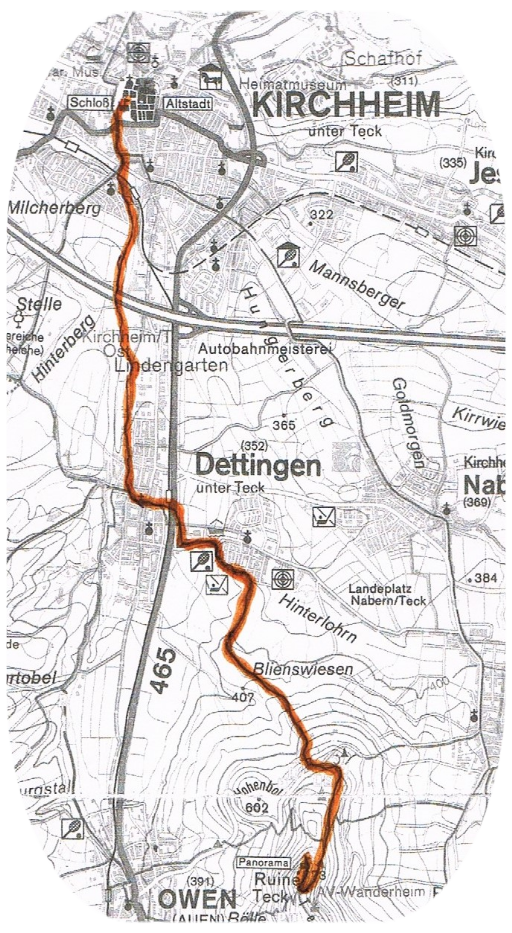 Mit dem Gongschlag der Rathausuhr Punkt 15 Uhr fällt der Startschuss zum letzten Event im Jahr. Die Aufgabe ist es die rund 18 km lange Strecke von Kirchheim über Dettingen dann über den Guckenrain anschließend über den Ho Chi Min-Pfad auf den Teckberg zu laufen. Wer den Höhenunterschied von ca.464 Metern bewältigt hat kann sich eine kurze Verschnaufpause im Burghof der Teck gönnen.